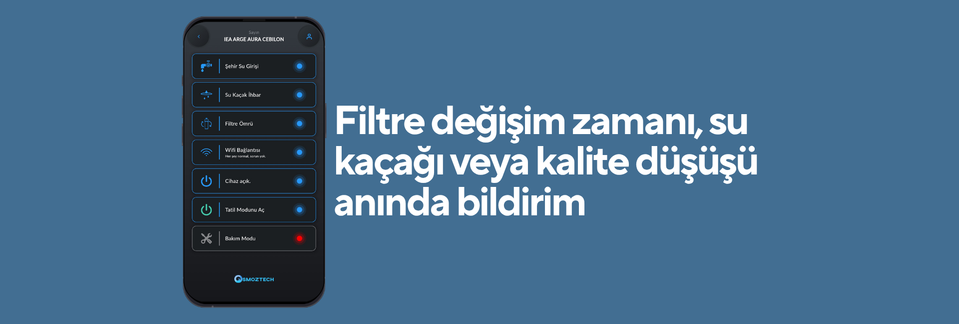 ⚠️ Akıllı Uyarılar - Filtre değişim zamanı, su kaçağı veya kalite düşüşü anında bildirim