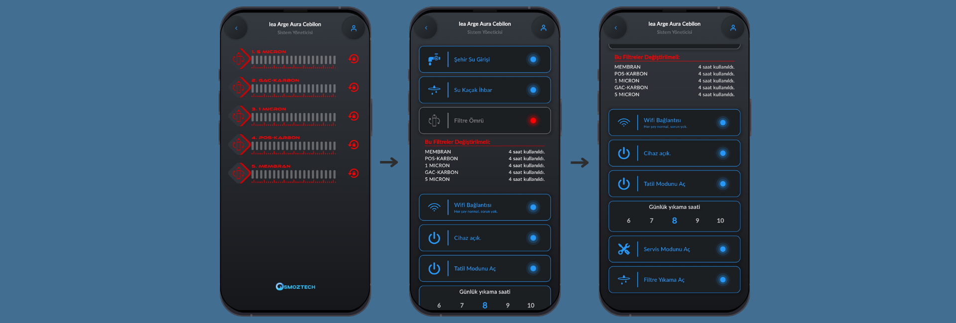 Mobil Uygulama Kontrolü - Su kalitesi, tüketim analizi ve filtre ömrü takibi